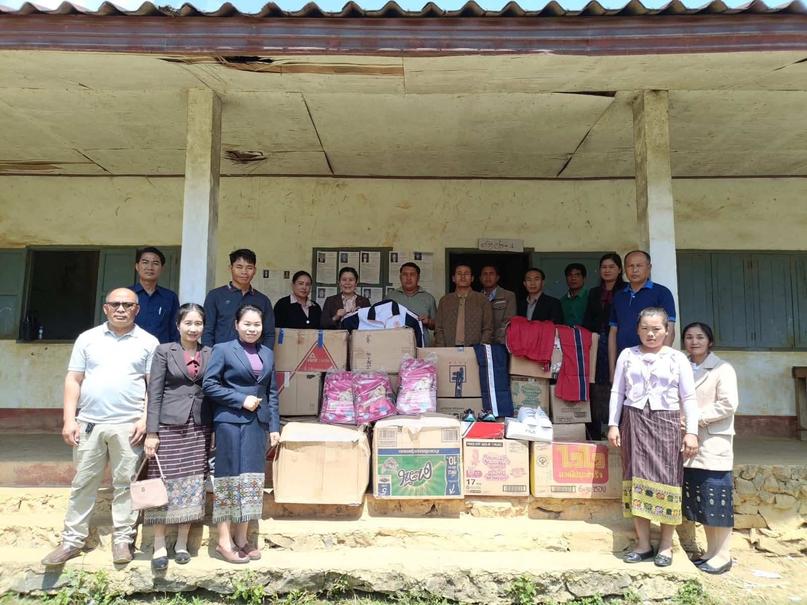 ໃນໂອກາດທີ່ມາແລກປຽ່ນບົດຮຽນຄັ້ງນີ້ຄະນະໂຄສະນາອົບຮົມແຂວງໄດ້ນໍາເອົາເຄື່ອງຈໍານວນໜຶ່ງມາມອບໃຫ້ແກ່ບ້ານລວມມີ ຊຸດກິລາ 93 ຊຸດ, ເກີບ 72 ຄູ່, ຖົງນັກຮຽນ 46 ໜ່ວຍ, ໝວກ 12 ໜ່ວຍ, ອຸປະກອນການຮຽນ 1 ແກັດ ແລະ ປື້ມຂຽນ 157 ຫົວ ລວມເປັນມູນຄ່າທັງໝົດ 67.225.000 ກີບ.